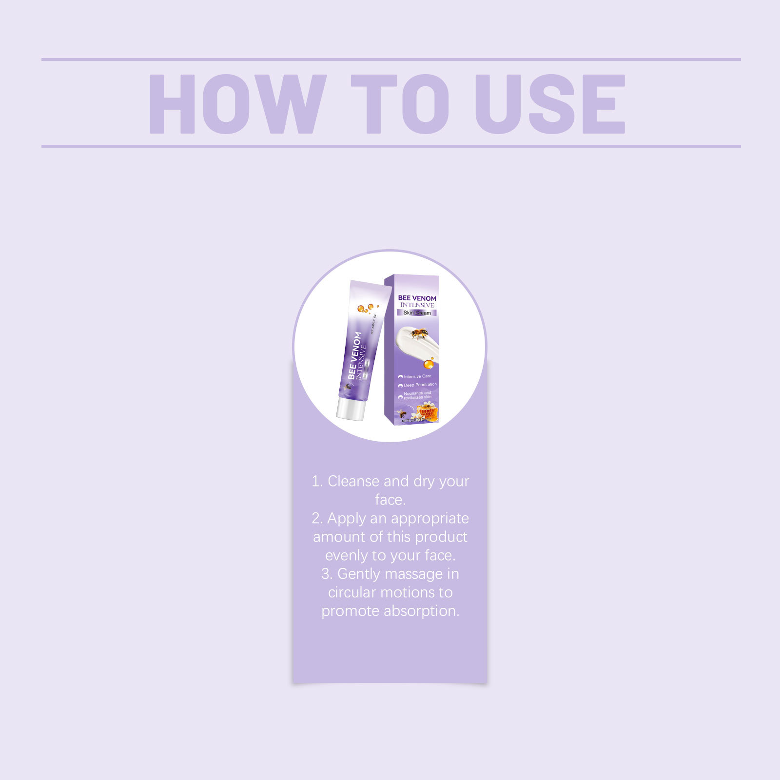 Product information: Ingredients: water, mineral oil, glycerin, glycerol stearate, 1,2- hexanediol, carbomer, arginine, bee venom.